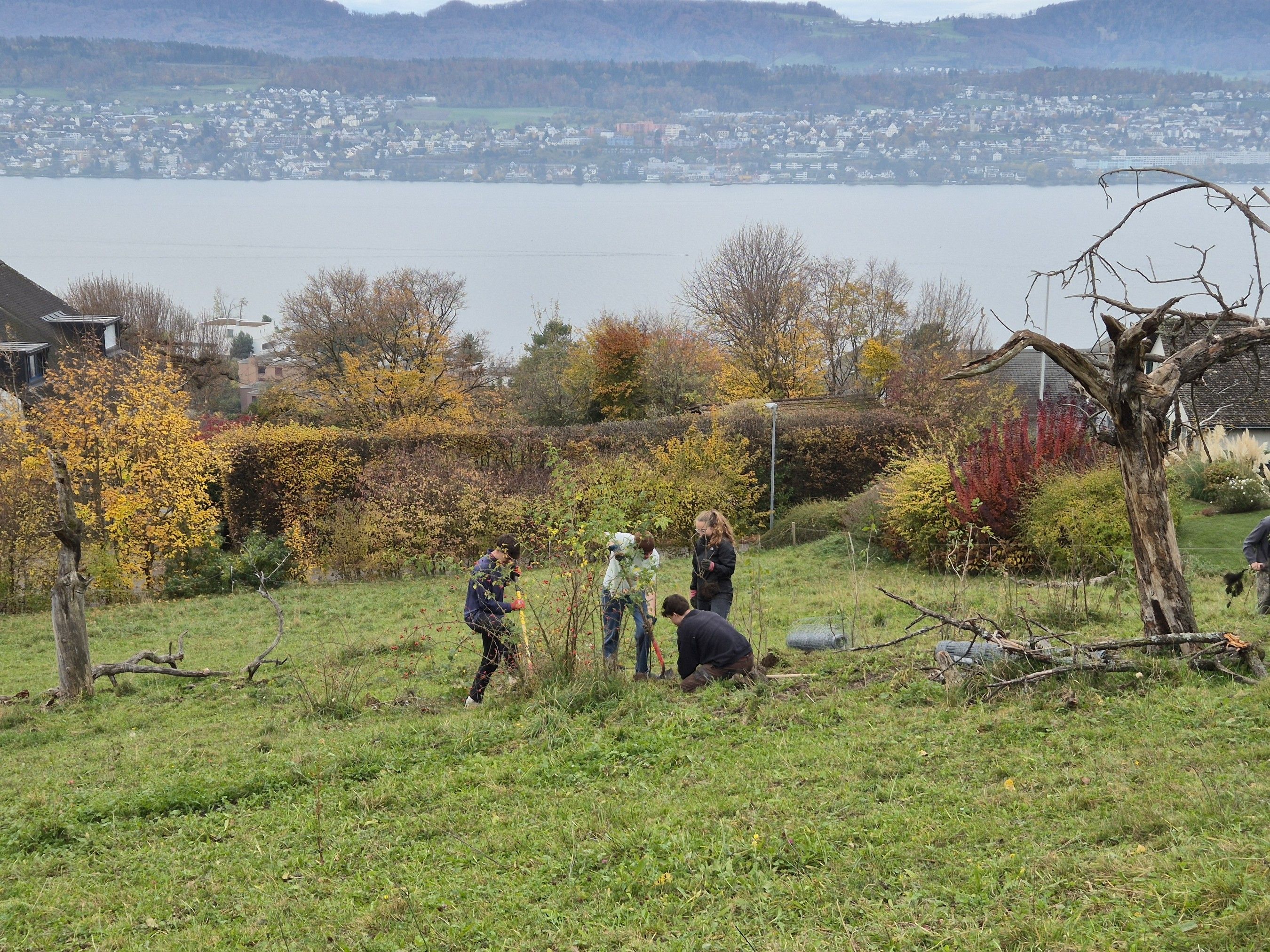 Der Natur- und Vogelschutzverein Erlenbach-Herrliberg, der Studierendenverein Arbor Mundi, andere freiwillige Helfer:innen sowie das Naturnetz Pfannenstil haben am 1. November 2025 zusammen angepackt. In Erlenbach wurden diverse Sträucher und (Obst-) Bäume gepflanzt.