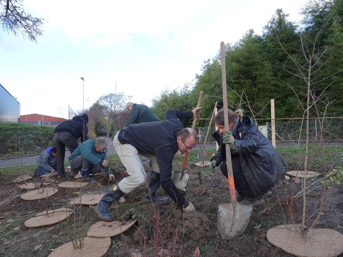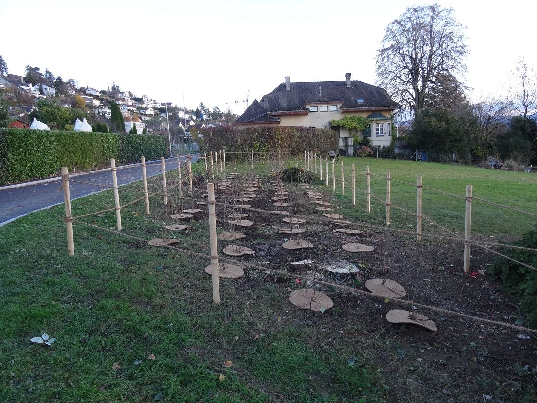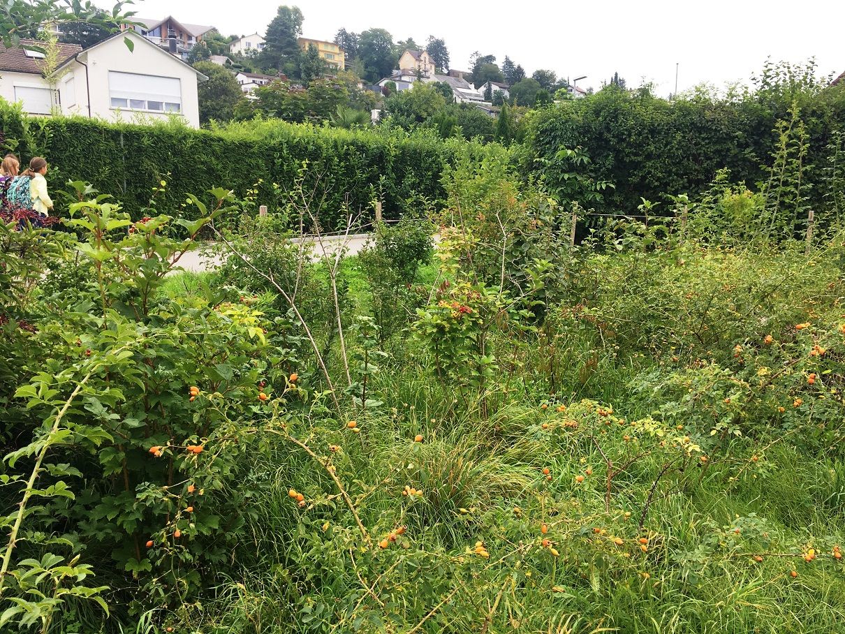 Die öffentliche Anlage "Allmendli" wurde im Rahmen eines Aktionstages ökologisch aufgewertet. Mehrere Kirschlorbeere mussten entfernt werden. Sie wurden durch eine einheimische Wildhecke ersetzt.